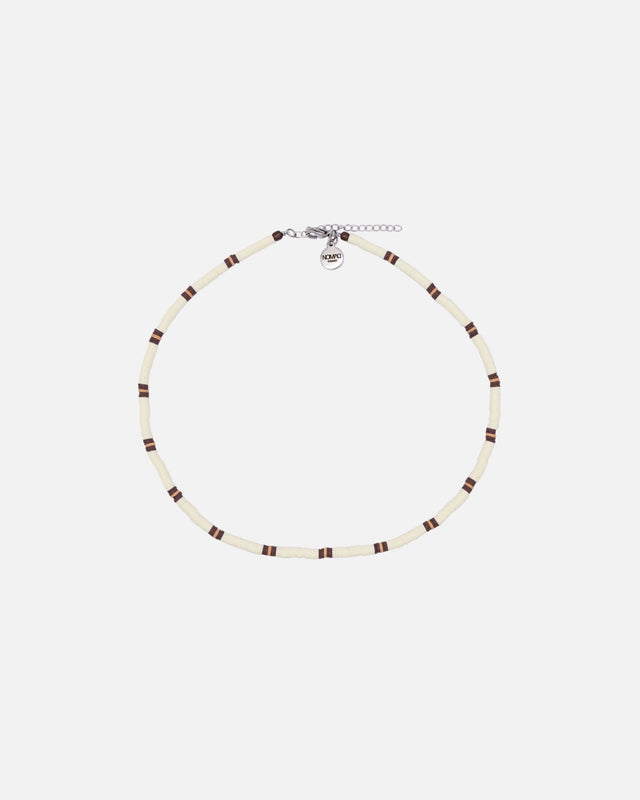 Se cuenta de los collares de cuentas de arcilla, que son tan primitivos como la misma isla. Las primeras tribus de la isla, al observar la fragilidad de los recién nacidos que llegaban al mundo, buscaron una manera de protegerlos contra los peligros del exterior. Así que comenzaron a moldear pequeñas cuentas de arcilla blanca, que extraían de las cuencas fluviales y que cocían al sol hasta endurecerlas. Estas cuentas eran luego ensartadas con fibras naturales recolectadas de las palmas que crecían en la isla. El blanco fue elegido por su pureza, simbolizando un comienzo limpio y prometedor para los recién nacidos de la tribu. Se creía que el collar, al estar hecho de recursos naturales, establecía un vínculo entre el recién nacido y la tierra que lo sustentaría. Más allá de su significado simbólico, el collar también sirve como un reconocimiento de los nuevos miembros de la comunidad. Con el paso de los años, esta práctica se transformó en una ceremonia tradicional. Los nómadas aún fabrican el collar blanco, con sus propias manos, para sus descendientes como un acto de amor y dedicación. En las primeras semanas de vida, el collar se coloca en el recién nacido como una forma de bienvenida y protección. En su adolescencia, cambia el collar blanco por otro que representa el elemento de la naturaleza con el que se sienten identificados: tierra, agua, fuego, aire o Éter.